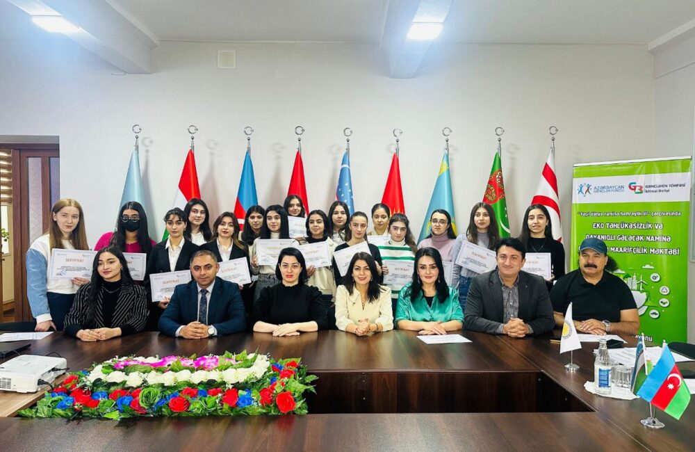 28 noyabr 2024-cü il tarixdə “Gənclərin Töhfəsi” İctimai Birliyinin təşkilatçılığı Azərbaycan Gənclər Fondunun maliyyə dəstəyi, Azərbaycan Dövlət Pedaqoji Universitetinin Quba filailının tərəfdaşlığı ilə “Eko təhlükəsizlik və dayanıqlı gələcək naminə gənclərin maarifçilik məktəbi” adlı tədbir keçirilib. Tədbirin keçirilməsində əsas məqsəd regionlarda gənclər arasında təmiz ətraf mühit və yaşıl enerji mövzularında maarifləndirmə yolu ilə davamlı həyat tərzini təbliğ etməkdən ibarətdir. Tədbirdə Quba rayon İcra Hakimiyyətinin əməkdaşı Əhməd Nurullayev, Azərbaycan Dövlət Pedaqoji Universitetinin Quba filailının prorektoru Aysel Şeydayeva, Gənclərin Töhfəsi İctimai Birliyinin sədri Asim Vəliyev, layihə və Qida Təhlükəsizliyi Hərəkatının rəhbəri Məhsəti Hüseynova, müəllimlər və tələbələr iştirak edib. Həmçinin layihə çərçivəsində “ətraf mühit tullantıları” və “su ehtiyatlarından səmərəli istifadə” mövzusunda hazrlanmış video-çarx təqdim olunub. Sonra tədbir iştirakçılarına sertifikatlar təqdim olunub.